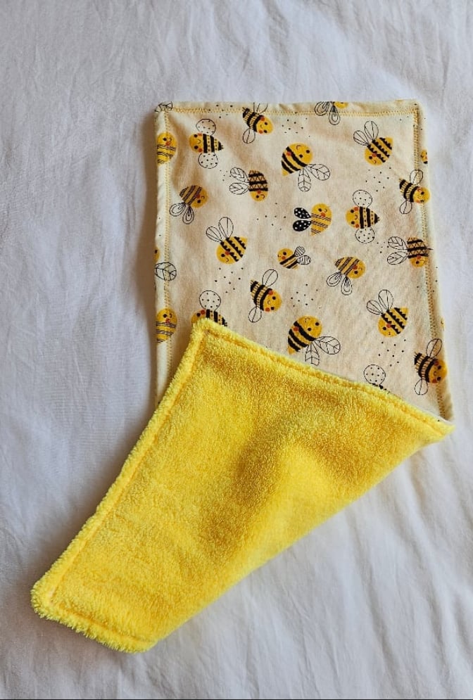 8"x18" Flannel Burp Cloth with yellow soft & absorbent microfiber backing