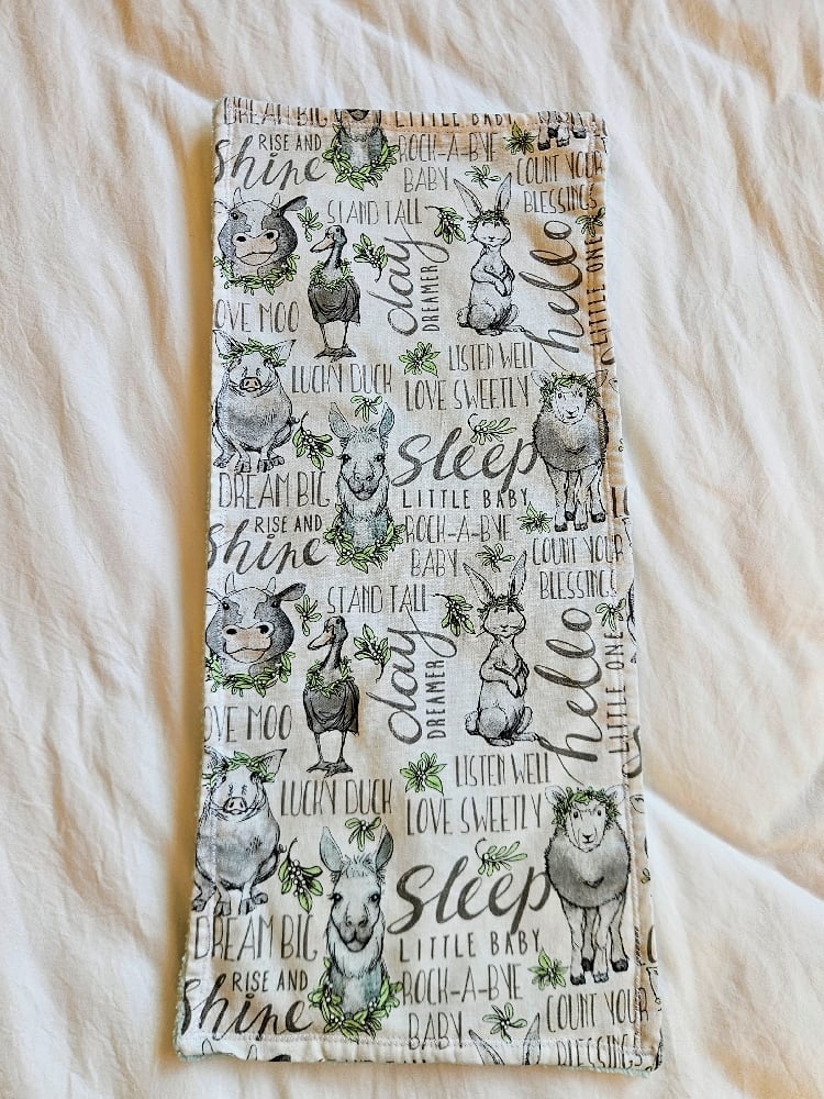 Farm Friends Bedtime burpcloth with aqua backing