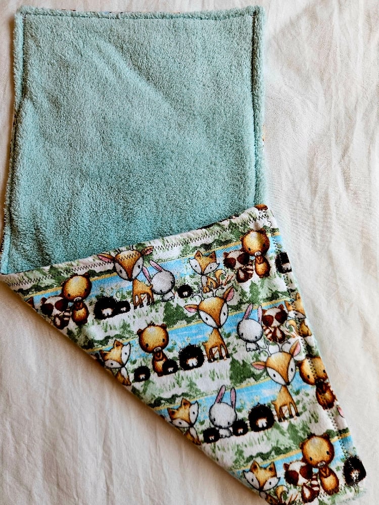8"x18" Flannel Burp Cloth with blue soft & absorbent microfiber backing