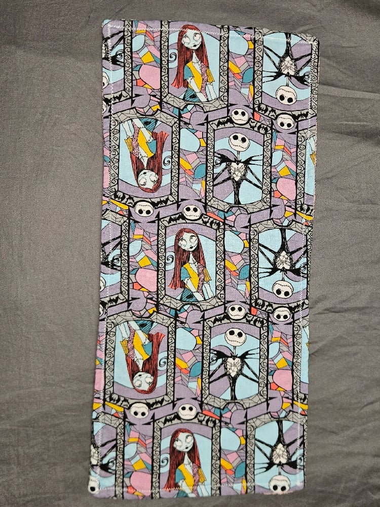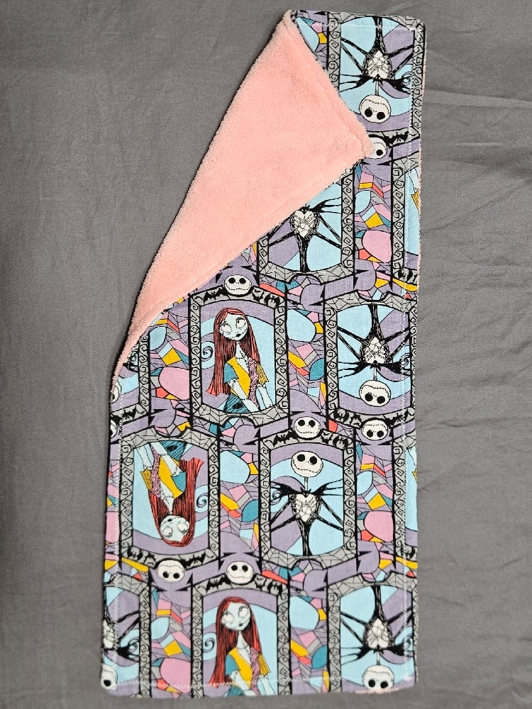 8"×18" Jack & Sally burpcloth with pink absorbent microfiber backing