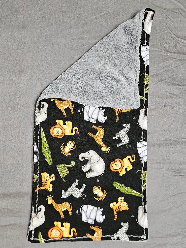 8" x18" safari burp cloth with grey absorbent microfiber backing
